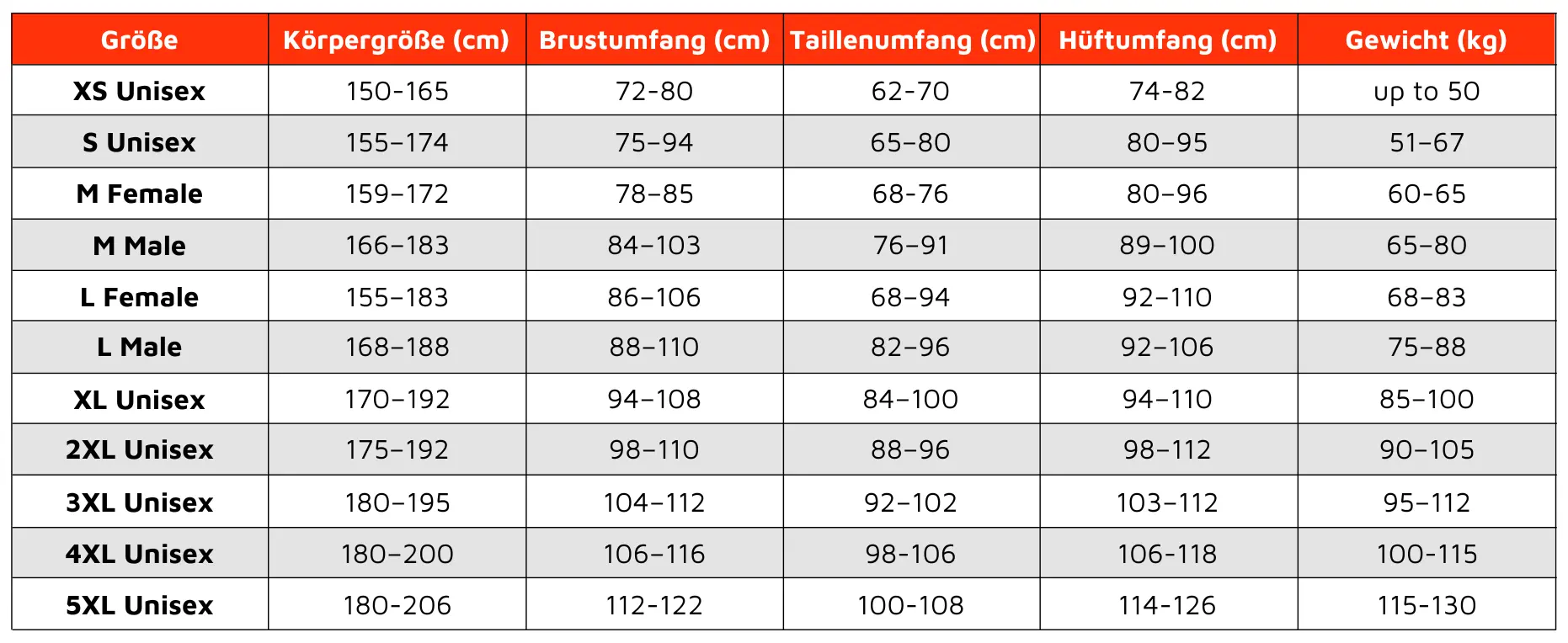 - 11 Individuelle Größen (S-5XL): Perfekte Passform für jede Körpergröße und -form.